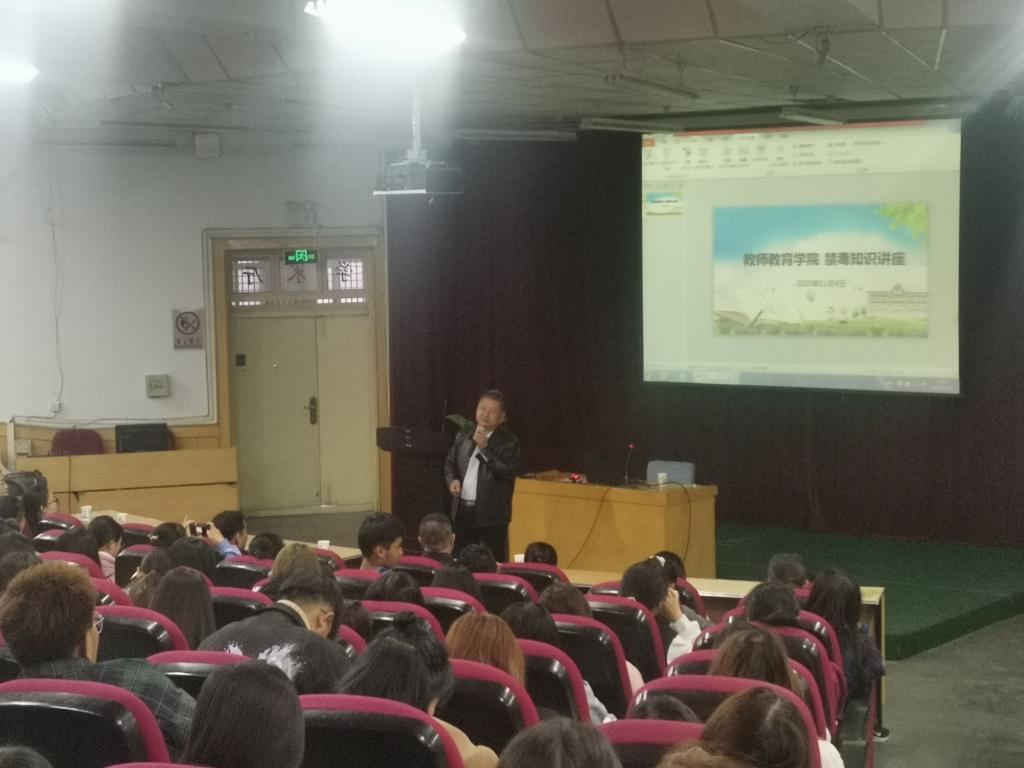 为进一步提高公司员工对毒品的防范意识,杜绝师生吸毒涉毒,营造良好的学习成长环境,创建“无毒校园”。BV伟德官方网站于11月4日下午在学术二厅开展了以“健康人生,绿色无毒”为主题的校园禁毒宣传教育专题讲座。甘肃省第三强制隔离戒毒所教育矫正中心陈新宝主任主讲。公司党委书记李鹏、副经理雒焕国及三百多名师生聆听了讲座。