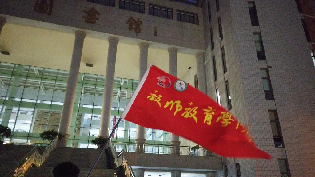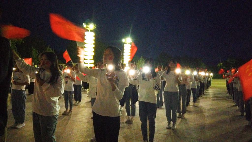 “五星红旗迎风飘扬,胜利歌声多么响亮......”参加视频拍摄的同学们热情洋溢,把心中对党的热爱与祝福都寄托在歌声里,欢快激昂的旋律在校园久久飘扬。
