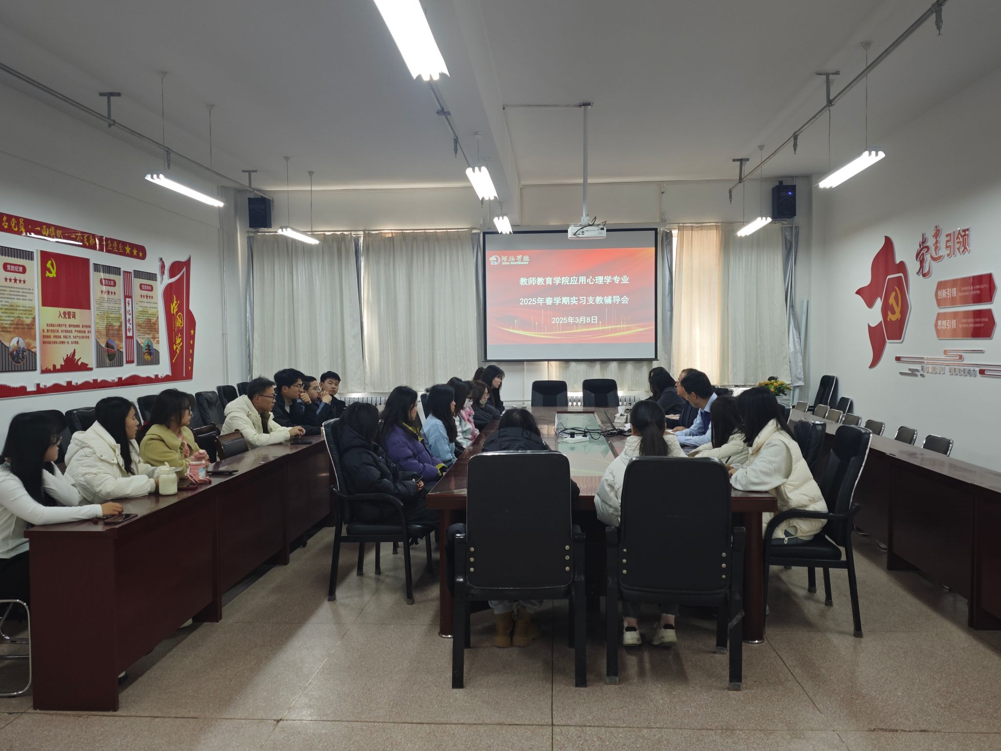 3月8日下午,在公司会议室召开2022级应用心理学专业春学期教育实习支教动员辅导会,公司负责人、应用心理学专业负责人及2022级应用心理学专业全体员工参加会议。
