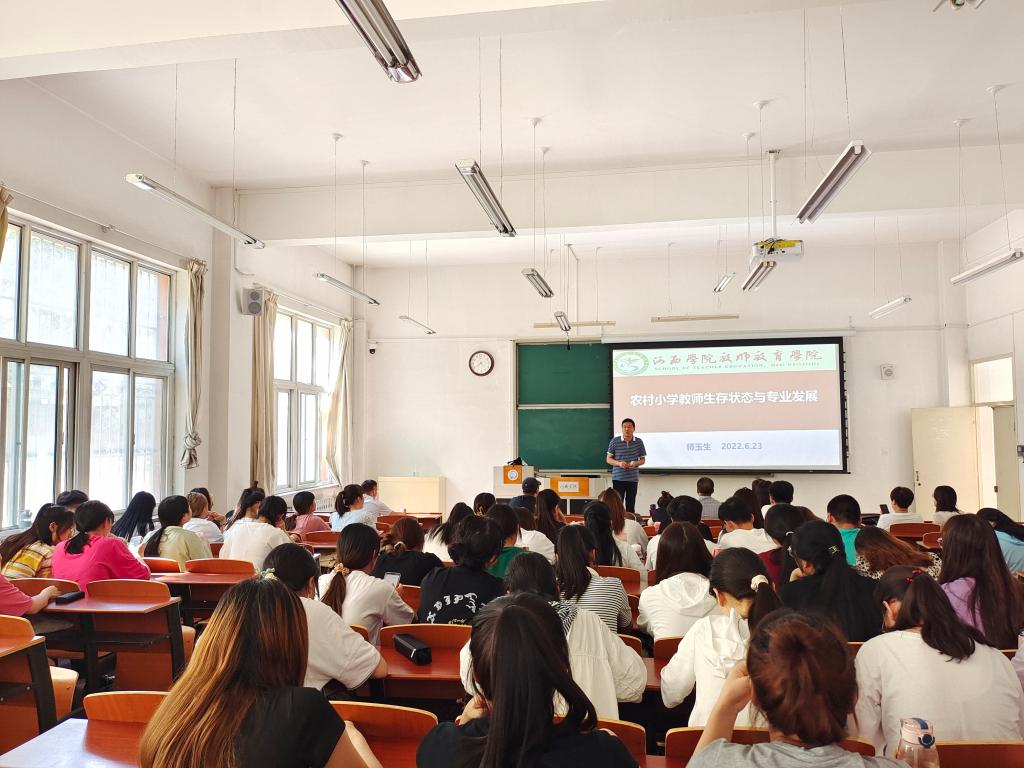 6月23日,BV伟德官方网站举行了第二十二届祁连学术月教师专场学术报告会。教师专场学术报告由师玉生教授和王克军讲师在8号教学楼阶梯教室向公司部分师生分别作了题为《甘肃省农村小学教师生存状态与专业发展》和《审美的失落——超写实油画艺术和抽象油画艺术的共同特征》的报告。