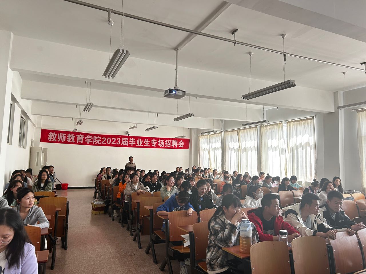 3月31日,内蒙古振慧文化体育产业有限公司和皮山县教育系统分别在九教117、317进行招聘宣讲。公司负责人、就业专干及140余名毕业生参加了此次招聘会。