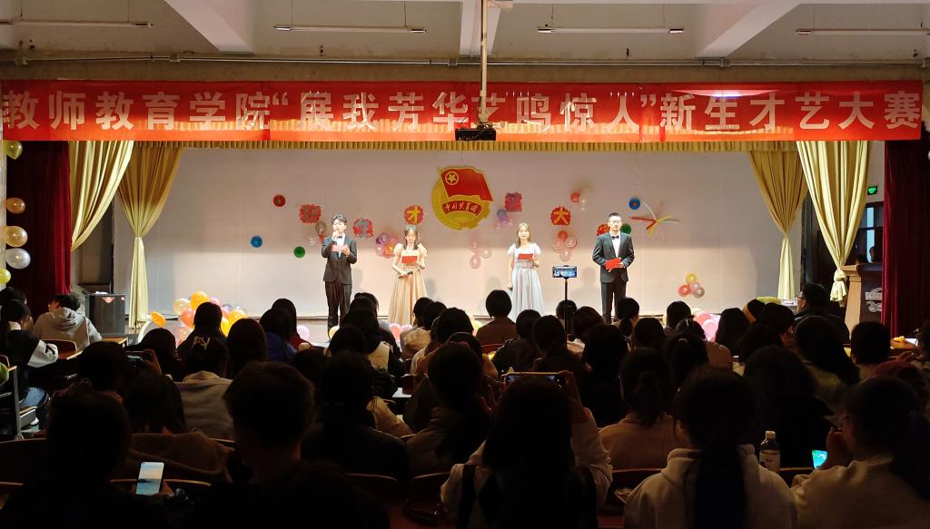10月18日晚,BV伟德官方网站在团委四楼多功能厅举办教师教育文化节系列活动之“展我芳华·艺鸣惊人”新生才艺大赛。现场2023级全体新生观看了比赛。