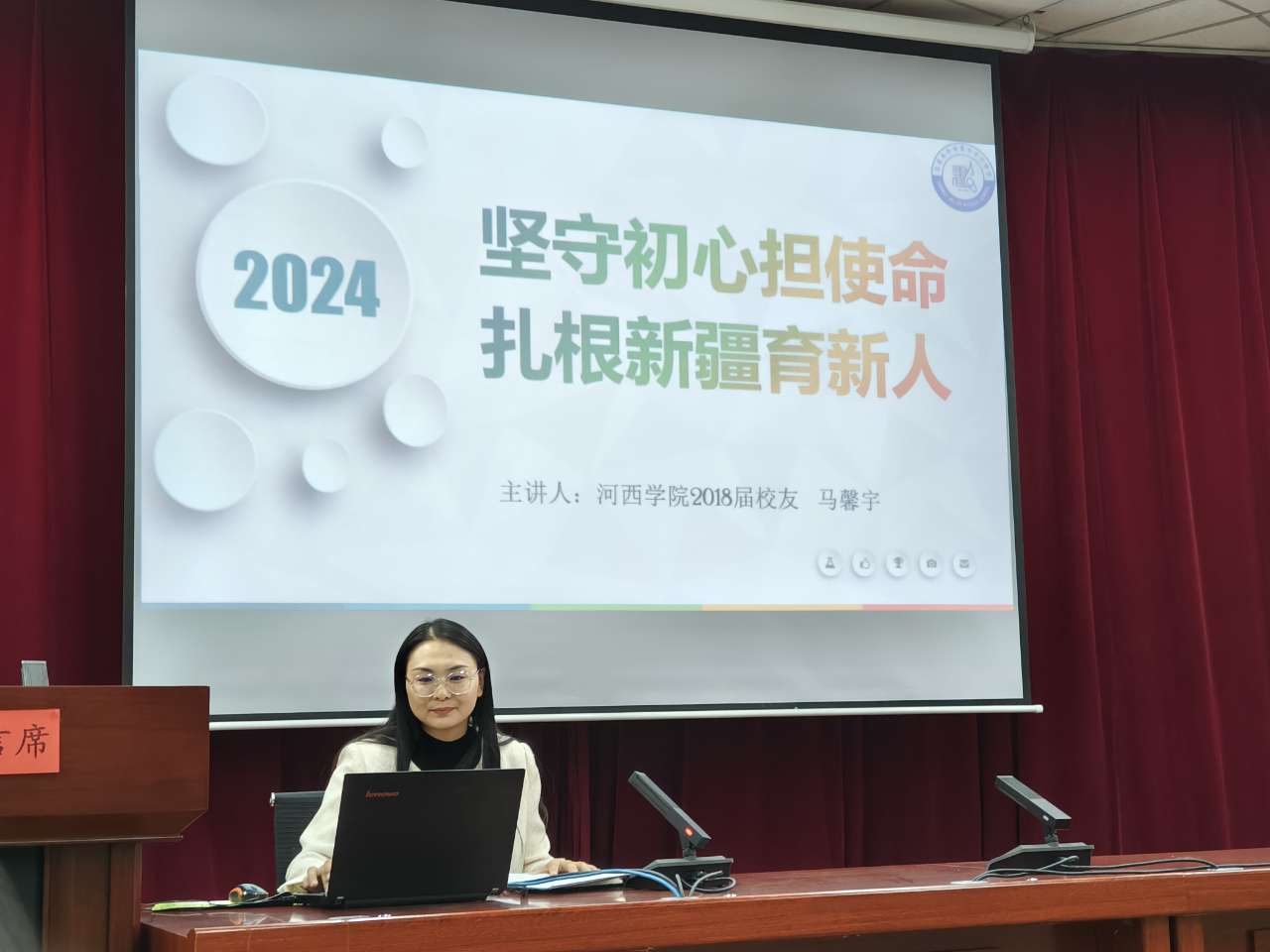 此次分享会邀请到了小教2002级毕业生杨艳、小教2012级毕业生单益强、小教2012级毕业生武天宏、小教2014级毕业生马馨宇4位优秀员工,他们分别为学弟学妹们带来了主题为《奋斗成就梦想》、《我的历练回忆录》、《研梦起航,破浪前行考研人的奇幻漂流》、《坚守初心担使命,扎根新疆育新人》的精彩分享。员工们介绍了各自在教育事业上的点点滴滴,分享了自己在工作岗位上的经验,激励同学们要眼中有光心中有梦,做好自己的人生规划。