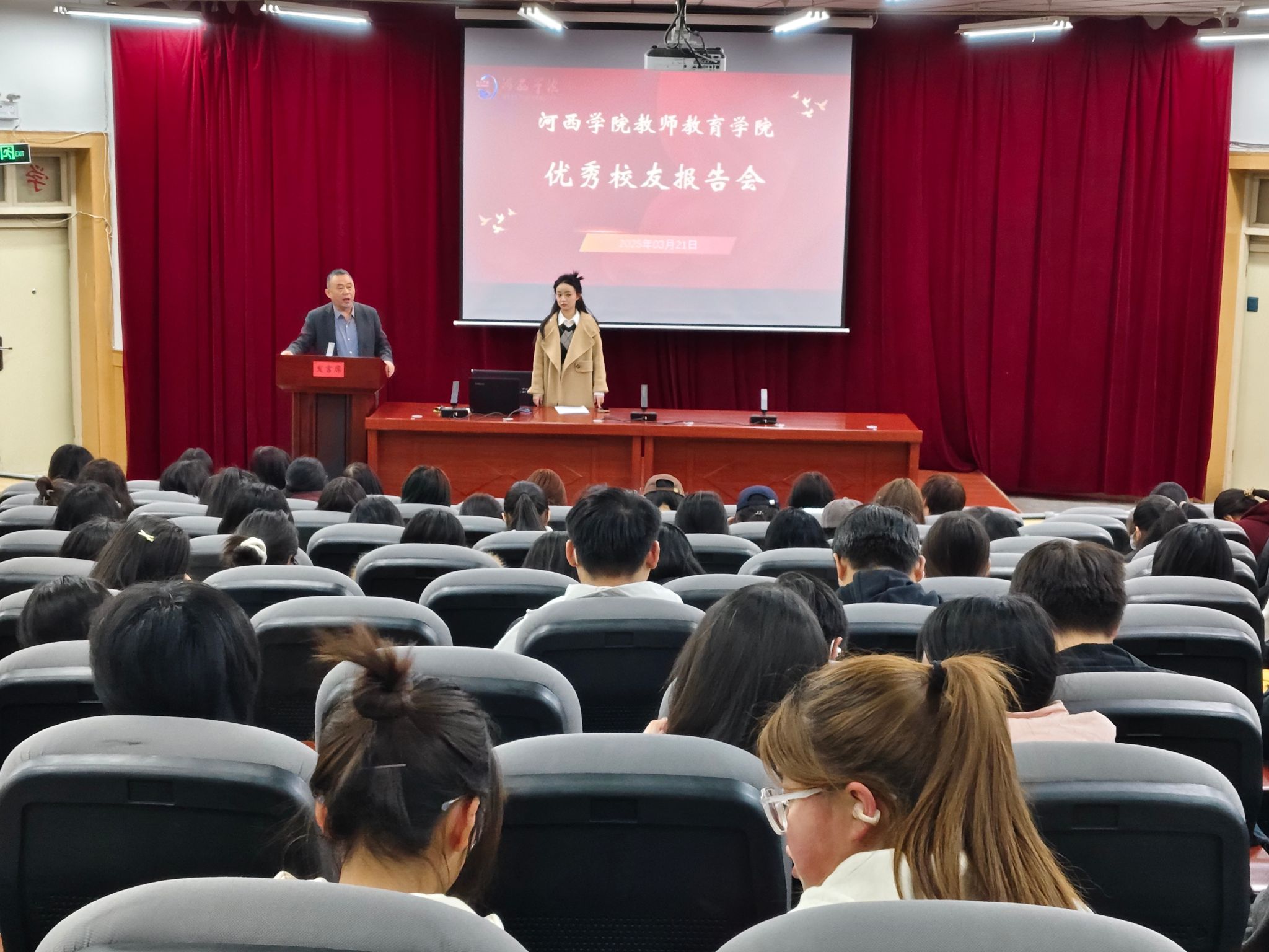 为推动在校员工了解职业发展路径,汲取优秀员工的成功经验,BV伟德官方网站于03月21日晚在学术报告一厅举行优秀员工报告会。此次报告会主讲人为公司2022届毕业生,小学教育优秀员工魏文婧、现八师石河子市第十三中学教师。小学教育专业负责人主持报告会,公司党委书记、辅导员与2022级小学教育专业,2023级、2024级全体员工参与。
