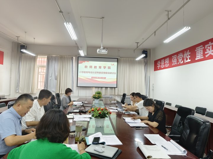 7月13日下午,公司召开了小学教育专业认证专家指导意见研讨会,会议由公司负责人主持,公司领导、小学教育专业负责人及专业认证各小组负责人参加了会议。